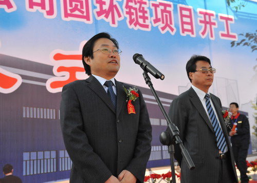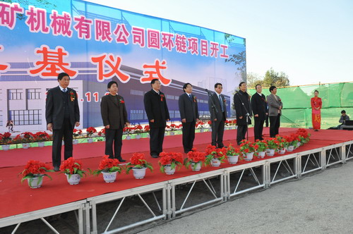 奠基開工儀式上,西安重裝集團(tuán)董事長、黨委書記王增強(qiáng)講話,他代表重裝集團(tuán)對蒞臨開工儀式的各位領(lǐng)導(dǎo)、各位嘉賓和同志們表示熱烈的歡迎,對長期支持、幫助和關(guān)心重裝集團(tuán)發(fā)展的陜煤化集團(tuán)、澄合礦業(yè)公司、各兄弟單位表示衷心的感謝,對前期做了大量基礎(chǔ)調(diào)研、可研論證、項(xiàng)目準(zhǔn)備工作的有關(guān)部門和專家,對投入這次工程建設(shè)的設(shè)計(jì)單位、施工單位、監(jiān)理單位和項(xiàng)目管理的同志們表示親切的慰問。他指出,圓環(huán)鏈項(xiàng)目是重裝集團(tuán)又一個(gè)重點(diǎn)投資項(xiàng)目,暨關(guān)系到澄合煤機(jī)公司的未來發(fā)展,也是重裝集團(tuán)產(chǎn)業(yè)鏈的重要環(huán)節(jié)和經(jīng)濟(jì)增長點(diǎn),意義重大。他要求澄合煤機(jī)公司在項(xiàng)目建設(shè)中以重裝集團(tuán)所奉行的“用戶滿意、員工幸福”的基本理念,高標(biāo)準(zhǔn)、嚴(yán)要求、精心組織、科學(xué)施工、做出精品,為澄合煤機(jī)公司、重裝集團(tuán)的發(fā)展做貢獻(xiàn)。