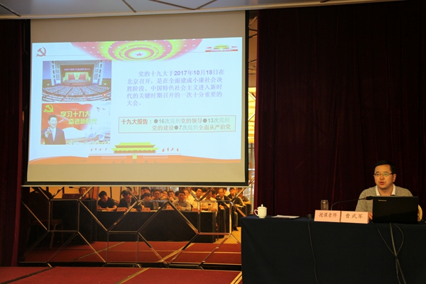 據(jù)悉,本期培訓班為期5天,培訓主要采取現(xiàn)場授課、觀看專題片、分組討論、總結(jié)交流等方式進行。培訓班學員由集團公司黨群各部門相關(guān)負責人、所屬各單位黨委(總支)副書記、宣傳部門負責人共60余人。培訓班邀請省委黨校的專家、教授進行授課,授課內(nèi)容涵蓋了習近平新時代中國特色社會主義思想和黨的十九大精神解讀、全面從嚴治黨新成就新形勢新任務解析、陜西深化“一帶一路”民族經(jīng)濟合作的機遇與挑戰(zhàn)、新時代意識形態(tài)安全工作、新時代深入推進黨的建設(shè)新的偉大工程等多個方面的課題。培訓期間,組織學員觀看了專題紀錄片《厲害了,我的國》,安排學員利用晚上的課余時間自學《習近平在紀念馬克思誕辰200周年大會上的講話》《習近平在全國生態(tài)環(huán)保保護大會上的講話》《關(guān)于進一步激勵廣大干部新時代新?lián)斝伦鳛榈囊庖姟返攘暯娇倳浿匾v話和文件精神。同時,還組織學員圍繞培訓的有關(guān)課題進行分組討論、總結(jié)交流。