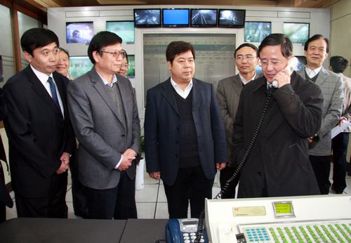 檢查組來到象山礦井,分為地面和井下兩組,重點(diǎn)查看了韓城礦業(yè)公司象山礦井的安全生產(chǎn)狀況、瓦斯治理情況和領(lǐng)導(dǎo)下井帶班情況。副省長吳登昌深入象山礦井調(diào)度室、安全文化長廊、礦井改擴(kuò)建施工工地進(jìn)行了詳細(xì)查看。在象山礦井區(qū)隊(duì)辦公樓前,副省長吳登昌與韓城礦業(yè)公司及象山礦井的領(lǐng)導(dǎo)一一握手,并現(xiàn)場詢問礦井安全設(shè)施投入狀況,一通三防及瓦斯治理情況。在調(diào)度室,副省長吳登昌一行聽取了韓城礦業(yè)公司副總經(jīng)理師永貴的匯報(bào),通過調(diào)度室的安全生產(chǎn)監(jiān)測(cè)、監(jiān)控畫面了解了井下的安全生產(chǎn)運(yùn)行狀況,并與當(dāng)時(shí)正在井下帶班的象山礦井副礦長李永忠通話,詢問了井下領(lǐng)導(dǎo)帶班落實(shí)情況及井下的瓦斯?jié)舛?、瓦斯監(jiān)測(cè)情況、井下出勤人數(shù)、一個(gè)班的產(chǎn)量等情況,副省長吳登昌指出,韓城礦業(yè)公司井下地質(zhì)條件復(fù)雜,一定要搞好瓦斯監(jiān)測(cè)監(jiān)控工作,使職工能在安全的環(huán)境下作業(yè)。