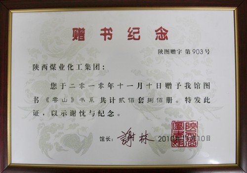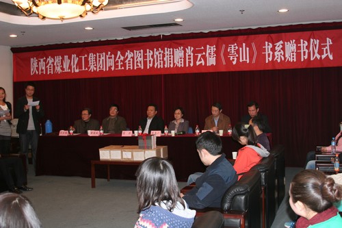 11月10日下午,由陜西煤業(yè)化工集團(tuán)向全省圖書(shū)館捐贈(zèng)肖云儒先生《雩山》書(shū)系活動(dòng)在省圖書(shū)館舉行,活動(dòng)共贈(zèng)書(shū)200套,共800冊(cè),將由省圖書(shū)館代為發(fā)放,其中涵蓋整個(gè)陜西省各個(gè)市縣及部分高校圖書(shū)館。