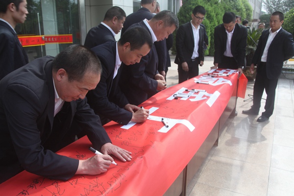 該公司黨委書記、董事長田玉民宣布“安全生產(chǎn)月”活動(dòng)正式啟動(dòng),并帶領(lǐng)全體人員在“生命至上、安全發(fā)展”橫幅上進(jìn)行了簽字。(屈海飛 蔣興文)