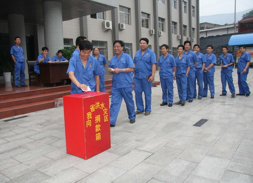 8月23日,陜煤化建設(shè)集團(tuán)又發(fā)出向甘肅舟曲山洪泥石流災(zāi)區(qū)捐款的倡議。倡議一經(jīng)發(fā)出,全體干部員工充分發(fā)揚(yáng)“萬(wàn)眾一心、眾志成城、一方有難、八方支援”的抗洪救災(zāi)精神,積極行動(dòng)、慷慨解囊、踴躍捐款,你50、我100、他200……,截止到8月26日上午就募集善款達(dá)91819元。 與此同時(shí),陜煤化建設(shè)集團(tuán)工會(huì)以最快的速度將募集到的善款匯至當(dāng)?shù)鼐葹?zāi)募捐辦公室,向甘肅舟曲受災(zāi)群眾及時(shí)奉獻(xiàn)了全體干部員工的一片愛(ài)心。