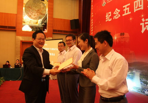下午2點(diǎn)30分,在《國歌》和《團(tuán)歌》聲中,集團(tuán)公司五四表彰大會(huì)開幕,集團(tuán)公司黨群工作部部長夏迎廣主持大會(huì)。會(huì)上,集團(tuán)公司黨群工作部副部長、團(tuán)委負(fù)責(zé)人孫鵬宣讀表彰決定。與會(huì)領(lǐng)導(dǎo)為獲得2008-2009年度集團(tuán)公司“五四紅旗團(tuán)委”和“五四紅旗團(tuán)支部”的先進(jìn)集體頒獎(jiǎng)。集團(tuán)公司黨委副書記馬富元在表彰大會(huì)上講話,他代表集團(tuán)公司黨委向廣大團(tuán)員和青年朋友們致以節(jié)日的問候。他說,目前集團(tuán)公司35歲以下青年員工3.2萬人,青年已成為企業(yè)現(xiàn)實(shí)和長遠(yuǎn)的生產(chǎn)力,已成為實(shí)現(xiàn)集團(tuán)公司發(fā)展戰(zhàn)略目標(biāo)的一支重要力量。集團(tuán)公司發(fā)展的新形勢和新任務(wù),為廣大青年員工施展才華提供了廣闊舞臺(tái),同時(shí)也提出了新的更高的要求。他要求青年員工不僅要有追求先進(jìn)的遠(yuǎn)大抱負(fù),更需要有腳踏實(shí)地的實(shí)干精神,要從自身做起,立足崗位,勤勉敬業(yè),扎實(shí)工作,在不同領(lǐng)域創(chuàng)造一流業(yè)績。他同時(shí)要求集團(tuán)公司各級(jí)黨組織要加強(qiáng)對(duì)共青團(tuán)工作的領(lǐng)導(dǎo)、支持,從思想、組織、工作、學(xué)習(xí)等多方面采取有力措施,充分發(fā)揮黨組織的帶動(dòng)作用,促使基層團(tuán)組織的吸引力、凝聚力和戰(zhàn)斗力明顯增強(qiáng)。