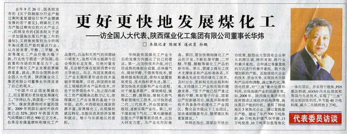 ——訪全國(guó)人大代表、陜西煤業(yè)化工集團(tuán)有限公司董事長(zhǎng)華煒