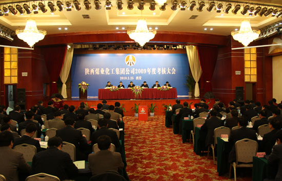 2月25日,省委組織部、省國資委共同組成考核組,對陜西煤業(yè)化工集團公司2009年工作進行目標責任年終綜合考核??己舜髸?,考核組組長、省國資委主任、黨委書記白阿瑩,副組長、省委組織部副巡視員魏安民、省國資委副主任劉陽,陜西煤業(yè)化工集團公司董事長、黨委書記華煒,總經(jīng)理高仰才和考核組成員、省國有企業(yè)監(jiān)事會主席趙秦川在主席臺就座??己私M成員、集團公司領導、集團公司所屬單位的主要領導和機關部門的負責同志以及職工代表130余人參加了會議。