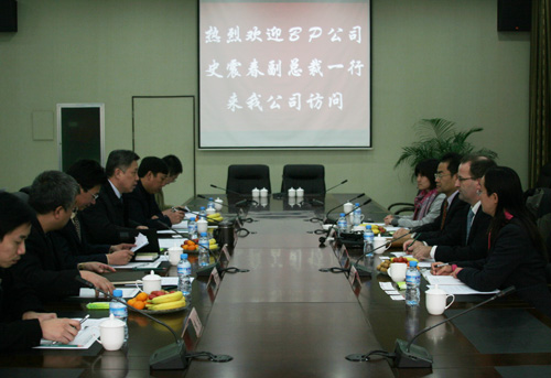 陜西煤業(yè)化工集團公司董事長、黨委書記華煒向BP公司高管表示歡迎,他介紹了集團公司煤炭、煤化工產(chǎn)業(yè)發(fā)展和多元發(fā)展情況,對集團公司五條煤化工技術(shù)路線進行了說明,分析了煤化工產(chǎn)業(yè)發(fā)展面臨的問題,表示希望有機會可以和BP公司合作。