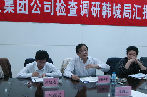 10月28日,陜西煤業(yè)化工集團(tuán)公司總經(jīng)理高仰才,副總經(jīng)理尚建選、朱周歧等一行8人到韓城礦務(wù)局調(diào)研指導(dǎo)工作。韓城局領(lǐng)導(dǎo)班子全體成員,局副總及財(cái)務(wù)、勞資、計(jì)劃、生產(chǎn)、通風(fēng)等有關(guān)處室負(fù)責(zé)人參加匯報(bào)會(huì)。