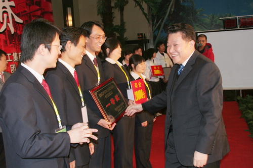 陜煤化集團公司副總經(jīng)理朱周岐為獲得一等獎的渭化集團公司頒獎