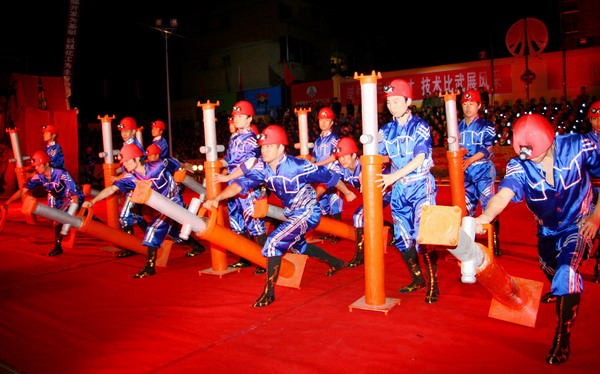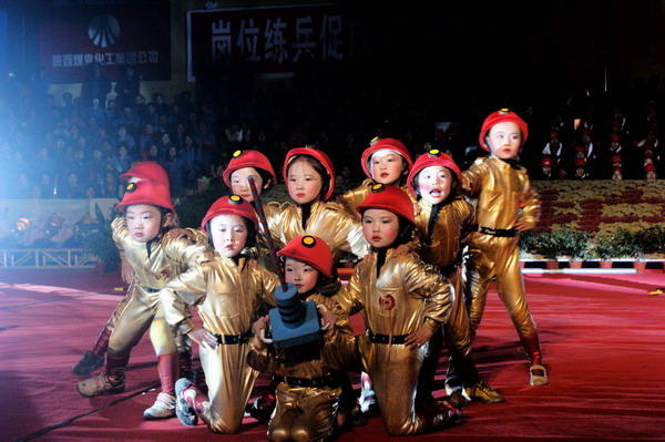 蒲白礦務局為開幕式精心準備的異彩紛呈的文藝演出,在隆隆的打鼓聲中拉開帷幕,舞動的長稠,鏗鏘的鼓點,青春的舞步,一下子把活動推上了第一個沸點。全部由礦山小伙子們出演的大型舞蹈《煤魂》,在燈光的配合下,現(xiàn)場的人們仿佛置身于百米井下,那長長的巷道,年輕的礦工把艱辛的勞動演繹成歡樂的樂章,奏響了新時代礦山科學發(fā)展、奉獻社會的最強音。幼兒園小朋友參加演出的《眾人劃槳開大船》、矸石電廠職工現(xiàn)場演繹的“手指口述”交接、技工學校學生們表演的軍體操、建安處社區(qū)女工們的換了舞蹈、職工表演的小沈陽模仿秀……展現(xiàn)了礦區(qū)職工的意氣風發(fā)、自信自強、敢作敢為的堅強意志和精神風貌。