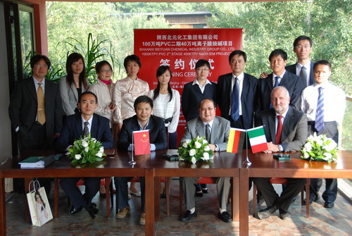 9月17日,在北京八達嶺長城腳下,北元集團100萬噸/年聚氯乙烯循環(huán)綜合利用項目二期40萬噸/年離子膜燒堿電解槽簽字儀式隆重舉行。陜西北元化工集團有限公司董事長李厚志、意大利伍德迪諾拉公司總裁舍文、中國天辰工程公司副總工程師楊克儉、中化建國際招標有限責任公司經(jīng)理邵菲及相關人員參加了儀式。