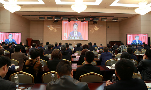 10月18日上午九點(diǎn)整,陜煤集團(tuán)研發(fā)樓三樓會(huì)議室里,集團(tuán)公司各領(lǐng)導(dǎo)、機(jī)關(guān)本部各黨支部支委成員、相關(guān)單位領(lǐng)導(dǎo)班子成員以及黨支部書記等近130余名黨員齊聚一堂,振奮精神,滿懷期待收看黨的十九大開幕式直播,認(rèn)真聆聽習(xí)近平同志代表第十八屆中央委員會(huì)向大會(huì)作的報(bào)告。陜煤集團(tuán)黨委書記、董事長(zhǎng)楊照乾作為十九大代表在會(huì)議現(xiàn)場(chǎng)聽取習(xí)近平總書記的報(bào)告。