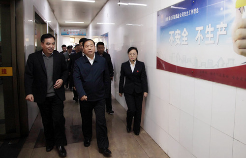 10月23日,陜西省委常委、省委統(tǒng)戰(zhàn)部部長、副省長姜鋒,深入蒲白西固煤業(yè)對安全生產(chǎn)工作情況進行檢查調(diào)研。省政府副秘書長張宗科,省安監(jiān)局局長王昊文、省交警總隊政委李昌,省交通廳副廳長丁勝仁,省煤管局局長陳永昌,渭南市、白水縣政府及有關部門領導隨行。蒲白礦業(yè)公司黨委書記、董事長沈顯華,總經(jīng)理張維新等陪同檢查。