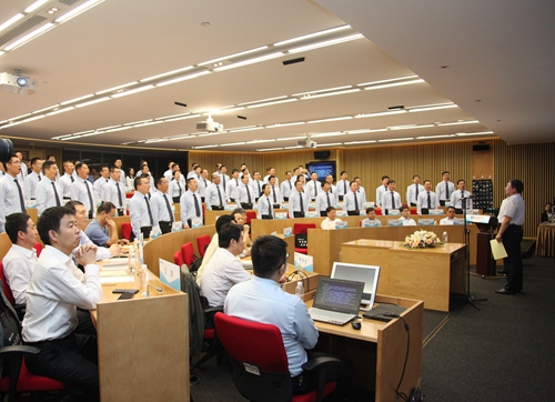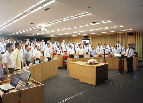 思想如水,做人亦如水,能進(jìn)退,而知進(jìn)退。創(chuàng)造如山,做人亦如山,望萬物,而容萬物。開學(xué)典禮上,70名學(xué)員同溫了“曲水流變,匯流澄鑒”的思創(chuàng)校訓(xùn),并鄭重宣誓:“在思創(chuàng)的搖籃里,苦心志,勞筋骨,擔(dān)當(dāng)大任。在思創(chuàng)的熔爐里,淬火提純,百煉成鋼。在思創(chuàng)的演習(xí)場,摩拳擦掌,苦練本領(lǐng),報(bào)效企業(yè)……”