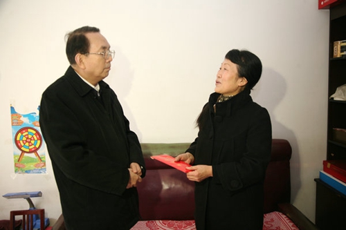 隨后,郭永平一行深入銅川礦業(yè)公司困難職工家庭,看望慰問了工亡遺屬賀綏青和困難黨員張福寶,并向他們送上了慰問品和慰問金。在賀綏青家,郭永平詳細詢問了她的家庭收入、日常生活、兩個孩子上學和就業(yè)等情況后,叮囑她有困難要及時反映,政府和企業(yè)會盡力為每一位困難群眾排憂解難。在張福寶家,郭永平詢問了老人和老伴的身體狀況,并對老人說,春節(jié)就就要到了,我代表省委省政府來看看你們,希望老人家保重身體,心情愉悅,度過一個歡樂祥和的春節(jié)。