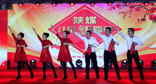 開場(chǎng)鑼鼓過后,團(tuán)拜會(huì)在歡樂喜慶的歌伴舞《陜煤全家福》中拉開了序幕,18個(gè)由集團(tuán)員工自編自導(dǎo)自演的節(jié)目在屬于他們自己的舞臺(tái)上精彩呈現(xiàn)。鏗鏘有力、振奮人心歌伴舞《共筑中國夢(mèng)》、詩朗誦《禮贊致敬獻(xiàn)陜煤》、《中國夢(mèng) 陜煤夢(mèng)》、《煤化揚(yáng)帆 筑夢(mèng)前行》, 反映了集團(tuán)員工自強(qiáng)不息、發(fā)奮圖強(qiáng)的精神品質(zhì),展現(xiàn)了集團(tuán)公司在發(fā)展道路上收獲的累累碩果。