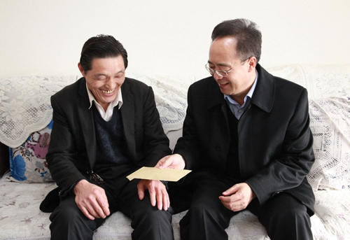 銅川分公司職工郇同州已經(jīng)因病去世3年有余,家里父母年過古稀,體弱多病,銅川分公司了解到這一情況后每年春節(jié)前都會(huì)安排專人登門慰問,今年,王增強(qiáng)一行也來到了家里。“感謝領(lǐng)導(dǎo)對(duì)我們的關(guān)心!”郇同州年邁的母親接過慰問金后,連聲道謝,對(duì)組織的關(guān)懷感動(dòng)不已。