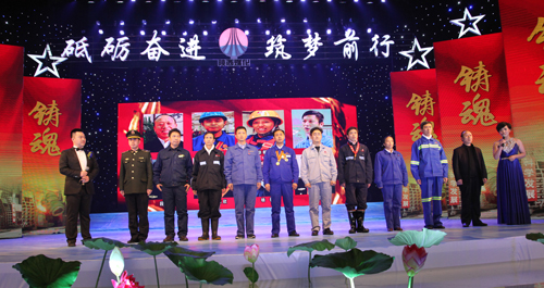 歷史無(wú)數(shù)次地證明,道路越泥濘,留下的腳印越清晰;負(fù)載越重,留下的腳印越深刻。在“鑄魂”篇章,由蒲潔能化選送的朗誦《蝶變》,從四個(gè)青年職工在企業(yè)的工作成長(zhǎng)娓娓道來(lái),真實(shí)記錄了蒲潔能化公司從無(wú)到有,由弱變強(qiáng)的發(fā)展歷程,重溫了創(chuàng)業(yè)的艱辛和收獲的喜悅。由榆北煤業(yè)選送的舞蹈《脊梁》,用極富力量的舞姿,鑄造了一座陜西煤化人搏擊風(fēng)浪、躬身前行的群體雕像;彬長(zhǎng)礦業(yè)選送的舞蹈《地心四百米》,藝術(shù)化地再現(xiàn)了一群隱忍內(nèi)斂的煤礦人在通向地心,通向史前,通向黑暗的過(guò)程中,展現(xiàn)出的自強(qiáng)不息的偉大精神和對(duì)幸福生活的不懈追求。期間,徐群賢、曲志欣、徐朝暉、楊棟、段志虎、張博、何亞軍、熊樹(shù)民、任保利、成小剛十位勞模代表受邀走上舞臺(tái)與觀眾見(jiàn)面。在隨后的現(xiàn)場(chǎng)采訪環(huán)節(jié),來(lái)自銅川礦業(yè)下石節(jié)煤礦的全國(guó)人大代表徐群賢表示,要在今后一如既往地為煤炭行業(yè)及煤礦工人的生存發(fā)展奔走呼吁,認(rèn)真履職,做好基層煤礦職工的代言人。為實(shí)現(xiàn)煤礦智能化開(kāi)采作出了突出貢獻(xiàn)的黃陵一號(hào)煤礦綜采三隊(duì)隊(duì)長(zhǎng)曲志欣表示,會(huì)在今后繼續(xù)做好智能化開(kāi)采技術(shù)攻堅(jiān)和推廣,鍛造了優(yōu)秀團(tuán)隊(duì),再創(chuàng)一流業(yè)績(jī)。曾獲第十屆國(guó)際礦山救援技術(shù)競(jìng)賽 “呼吸器席位操作”銀獎(jiǎng)的彬長(zhǎng)礦業(yè)公司救護(hù)隊(duì)員段志虎表示,要繼續(xù)發(fā)揚(yáng)不怕苦不怕累的精神,刻苦訓(xùn)練,頑強(qiáng)拼搏,為礦山安全保駕護(hù)航。