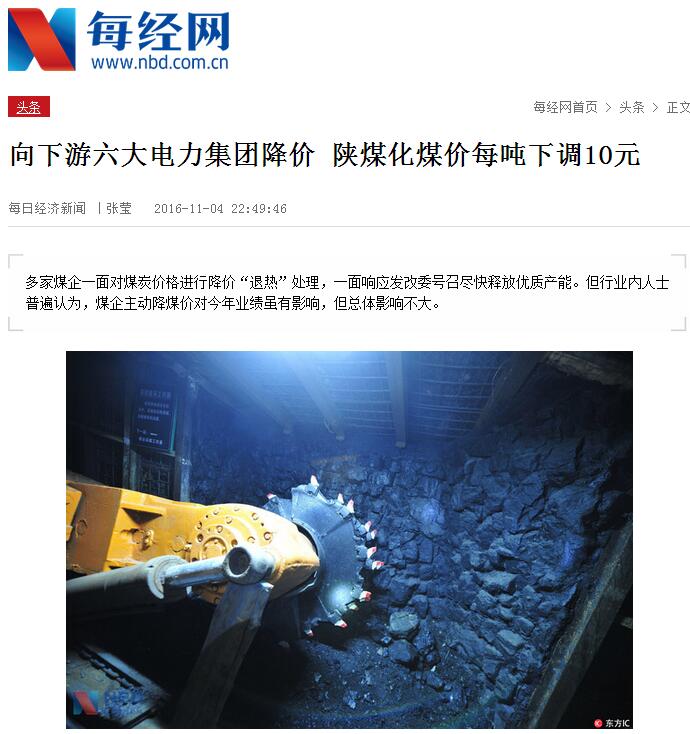 具體為,陜煤化集團(tuán)決定從2016年11月5日零時(shí)起,以目前陜煤化旗下各礦區(qū)的煤炭?jī)r(jià)格為基準(zhǔn),對(duì)華能、華潤(rùn)、華電、國(guó)電、大唐、國(guó)電投這六大電力集團(tuán)的鐵路動(dòng)力煤價(jià)格一律下調(diào)10元/噸。而地銷及其他客戶并不在此次降價(jià)范圍之內(nèi)。