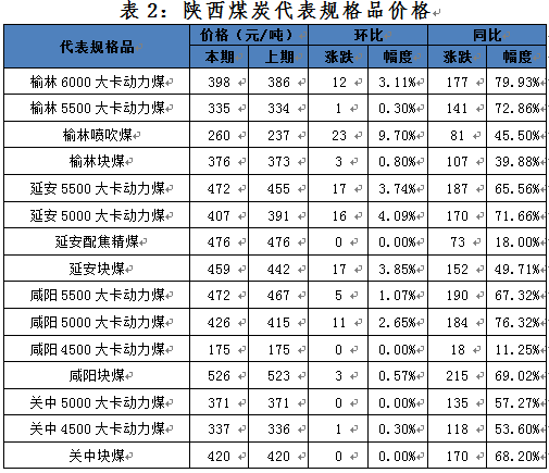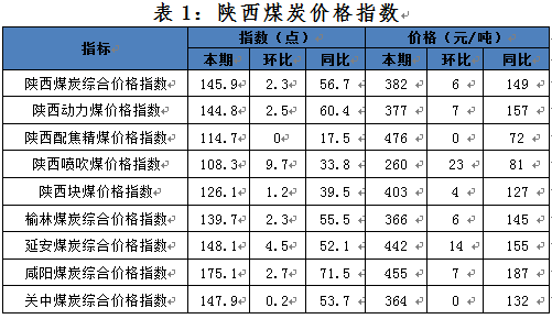 一、本期陜西煤炭?jī)r(jià)格指數(shù)及代表規(guī)格品價(jià)格情況