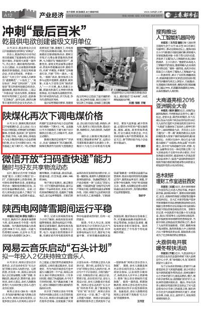陜煤化再次下調(diào)電煤價格