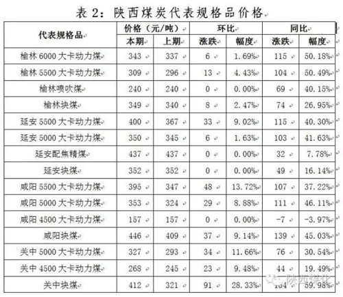 一、本期陜西煤炭價格指數(shù)及代表規(guī)格品價格情況