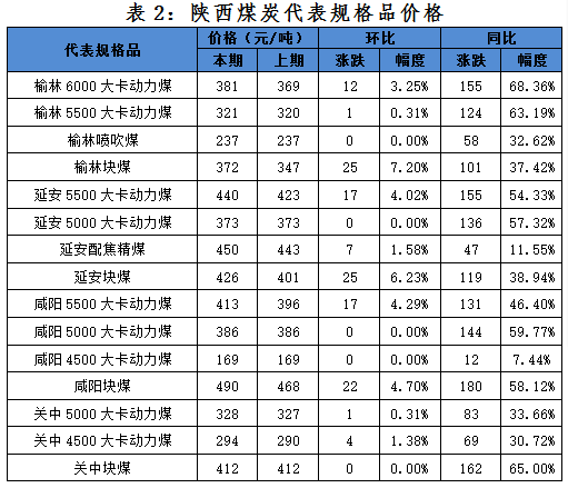 一、本期陜西煤炭價格指數(shù)及代表規(guī)格品價格情況