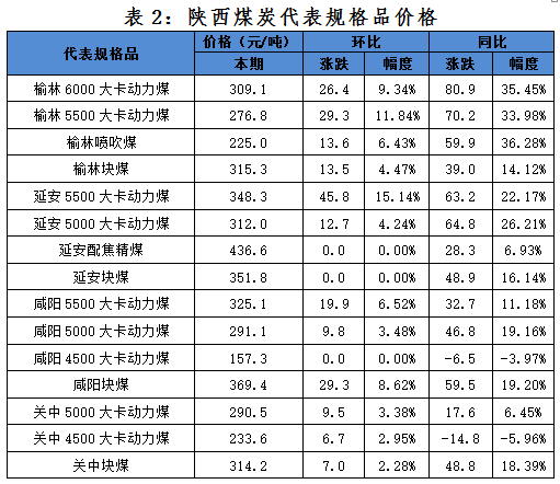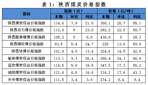 一、本期陜西煤炭價(jià)格指數(shù)及代表規(guī)格品價(jià)格情況