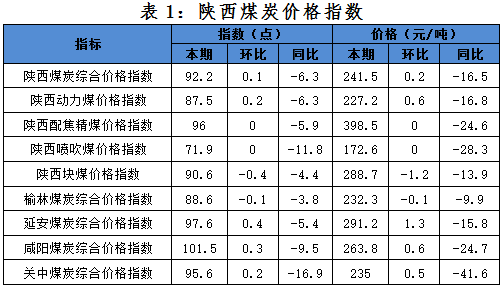 本期陜西綜合價格指數(shù)連續(xù)七期上漲,漲幅繼續(xù)收窄,從品種指數(shù)來看,動力煤指數(shù)繼續(xù)小幅上漲,塊煤指數(shù)有所回落,噴吹煤指數(shù)和配焦精煤指數(shù)保持穩(wěn)定;從區(qū)域指數(shù)來看,本期榆林價格指數(shù)小幅回落,其他三個區(qū)域價格指數(shù)均有不同程度上漲;從代表規(guī)格品數(shù)據(jù)來看,本期價格不變代表規(guī)格品增多,價格變化代表規(guī)格品價格以上漲為主。