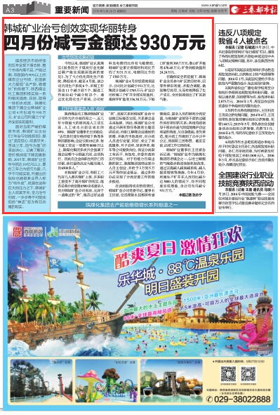 韓城礦業(yè)治虧創(chuàng)效實(shí)現(xiàn)華麗轉(zhuǎn)身