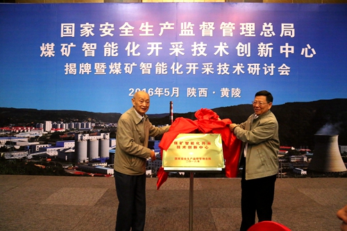 5月28日,國家安監(jiān)總局煤礦智能化開采技術(shù)創(chuàng)新中心揭牌暨煤礦智能化開采技術(shù)研討會在黃陵礦業(yè)公司舉行,全國首家煤礦智能化開采技術(shù)創(chuàng)新中心落戶黃陵礦區(qū)。國家安全生產(chǎn)監(jiān)督管理總局原黨組成員、總工程師,中國橋梁協(xié)會會長王樹鶴,中國煤炭工業(yè)協(xié)會副會長劉峰,國家安全生產(chǎn)監(jiān)督管理總局科技規(guī)劃司原司長、安全生產(chǎn)監(jiān)察專員施衛(wèi)祖,中國煤炭科工集團有限公司董事長王金華,陜煤化集團副總經(jīng)理尚建選,黃陵礦業(yè)公司黨委書記、董事長范京道,黨委副書記、總經(jīng)理師永貴出席儀式,來自國家安監(jiān)總局、中國煤炭工業(yè)協(xié)會、科研院所、陜煤化集團和兄弟單位的40多名領導和專家參加會議。