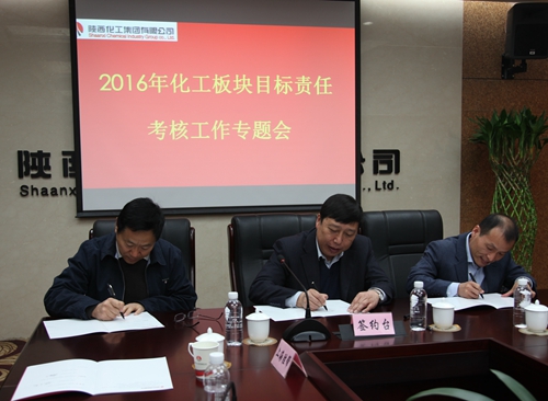 會上,陜西化工集團(tuán)副總經(jīng)理高政對化工板塊2016年目標(biāo)責(zé)任考核相關(guān)事項做了說明,梁玉昆代表化工板塊與所屬企業(yè)分別簽訂了2016年度目標(biāo)責(zé)任書。