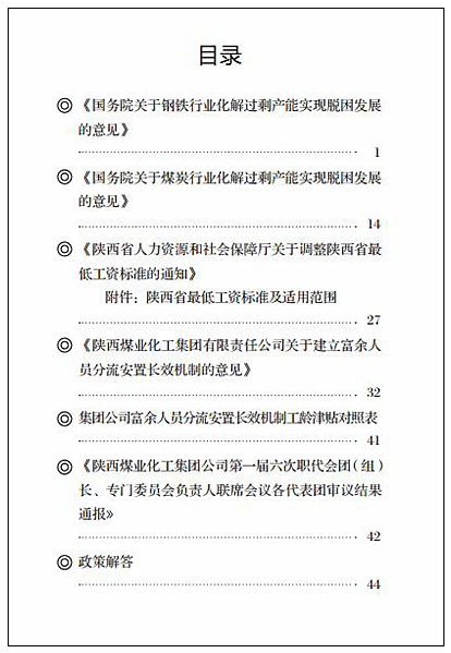 —摘自《陜西煤業(yè)化工集團有限責任公司富余人員分流安置長效機制意見宣傳手冊》前言