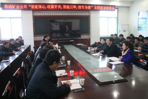 進(jìn)入1月份,公司黨委書記、董事長王世斌、總經(jīng)理陳永民分別擔(dān)任宣傳穩(wěn)定組和生產(chǎn)經(jīng)營組組長,其他副職領(lǐng)導(dǎo)分別擔(dān)任副組長,兵分四組,實行領(lǐng)導(dǎo)包礦制度,堅持深入基層,以問題為導(dǎo)向,迅速展開形勢任務(wù)宣講活動和治虧創(chuàng)效舉措落實工作。公司組織開展了以“堅定信心,咬緊牙關(guān)、苦戰(zhàn)三年,扭虧為盈”為宣講主題的形勢任務(wù)教育活動。深入到各礦井,組織各礦井班子成員、科隊級干部及機(jī)關(guān)工作人員,連續(xù)開展了4場次的主題宣講形勢任務(wù)教育報告會。使大家更加堅定地認(rèn)識到企業(yè)到了生死存亡的關(guān)鍵時刻,只要咬緊牙關(guān)減低成本不虧損,礦井就能渡過這道坎。