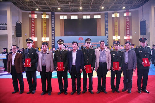 本次競賽共有來之地方煤礦和陜煤化集團所屬的煤礦、化工和鋼鐵板塊的19支專業(yè)礦山救援隊和救護消防隊,共380多人參與競技。經(jīng)過三天激烈的比拼,在第五屆礦山救援競賽中,銅川礦業(yè)公司救護大隊包攬模擬救災(zāi)和醫(yī)療急救兩個單項第一名,并取得團體成績第一名的佳績。澄合礦業(yè)公司救護大隊、彬長礦業(yè)公司救援中心分獲團體成績第二名和第三名;澄合礦業(yè)公司救護大隊獲得模擬救災(zāi)項目第二名,神南礦業(yè)公司救護大隊、韓城礦業(yè)公司救護大隊并列模擬救災(zāi)項目第三名;醫(yī)療急救項目第二名由澄合礦業(yè)公司救護大隊獲得,蒲白礦業(yè)公司救護消防大隊、黃陵礦業(yè)公司救護消防大隊并列該項目第三名。獲得呼吸器操作、綜合體能、個人全能三個項目前五名的參賽隊員也受到了大會的表彰。同時,大會還對參賽的地方礦山救援隊伍的獲獎團體和個人進行表彰。第二屆救護消防技術(shù)競賽團體第一名由黃陵礦業(yè)公司救護消防隊奪得,陜西北元化工集團公司救護消防隊、陜西渭河煤化工集團公司救護消防隊分獲團體第二名和第三名;陜西渭河煤化工集團公司救護消防隊,陜西陜化化工集團公司救護消防隊,陜西鋼鐵集團公司救護消防隊分獲模擬救災(zāi)項目前三名;綜合體能項目前三名由神木煤化工產(chǎn)業(yè)公司救護消防隊、黃陵礦業(yè)公司救護消防隊、陜西北元化工集團公司救護消防隊獲得。大會表彰了獲得綜合體能、理論考試兩個項目前五名的參賽隊員。出席閉幕式的領(lǐng)導(dǎo)向獲獎代表隊和個人頒發(fā)了獎牌和證書。