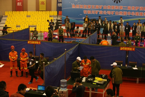 為全面檢驗礦山救援和救護消防隊伍技戰(zhàn)水平,檢閱救援隊伍素質(zhì),提升救援實戰(zhàn)能力,10月19日--22日,由陜西煤礦安全監(jiān)察局、陜西煤業(yè)化工集團共同主辦的第五屆礦山救援和第二屆救護消防技術(shù)競賽,在國家區(qū)域礦山應(yīng)急救援銅川基地——銅川礦業(yè)公司礦山救護大隊舉行。陜西煤礦安全監(jiān)察局黨組成員、巡視員高勤社、陜西省安全生產(chǎn)監(jiān)督管理局黨組成員、副局長陳存德、陜煤化集團公司副總經(jīng)理閔龍、銅川礦業(yè)公司執(zhí)行董事、總經(jīng)理王蓬、銅川礦業(yè)公司黨委書記郭寶輝,省安監(jiān)局、煤監(jiān)局、煤管局、銅川市消防支隊、榆林市安監(jiān)局、神木縣煤炭局、陜煤化集團有關(guān)部門負責同志和集團所屬單位分管應(yīng)急救援工作的同志,以及地方和陜煤化集團參加競賽的救援隊與現(xiàn)場觀眾參加了開、閉幕式。