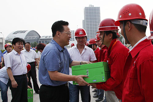 在西安煤機公司,馬富元一行先后來到該公司生產(chǎn)環(huán)境最為艱苦的金屬結(jié)構(gòu)車間和熱處理車間,每到一處,他與工人們親切握手交談,并一一送上毛巾、涼茶等物品,對大家在高溫天仍堅守在生產(chǎn)一線表示慰問和感謝。隨后馬富元分別察看了兩個車間的生產(chǎn)情況,詢問車間的生產(chǎn)任務(wù),了解職工各項權(quán)益保障情況。