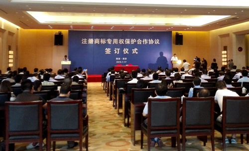 簽訂儀式上,副總經理尤西蒂代表集團公司與省工商局簽訂了《注冊商標專用權保護合作協(xié)議》。