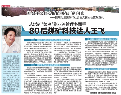 工作六年,從工作上的“菜鳥”到業(yè)務(wù)精英、煤礦管理的“多面手”,王飛已經(jīng)成為青年人心中的榜樣。而他卻仍然當(dāng)自己是新手,一如既往地踏實(shí)敬業(yè)、刻苦鉆研,兌現(xiàn)著當(dāng)初寫在工作日志上的誓言:把我的青春獻(xiàn)給這片煤海!