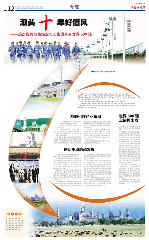 北京時間2015年7月22日晚,美國《財富》網(wǎng)站中文版和英文版同時公布了最新的《財富》世界500強(qiáng)企業(yè)榜單,素有“中國西部煤炭航母”之稱的陜西煤業(yè)化工集團(tuán)(以下簡稱陜煤化集團(tuán))憑借286.65億美元的銷售收入,躋身榜單,位列第416位,成為西部首家進(jìn)入世界500強(qiáng)的煤炭、煤化工企業(yè)。
