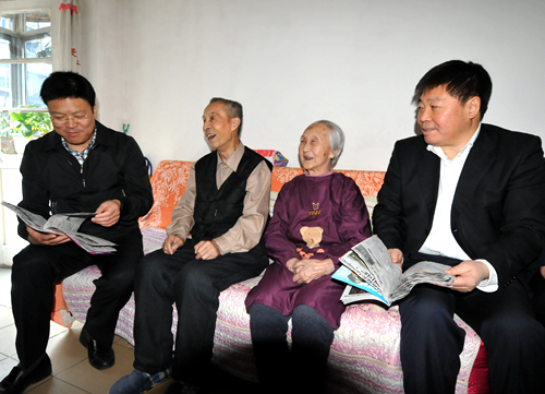 孫安會先后來到患有老年病的離休干部栗賓恩、患有帕金森綜合癥的退休干部馬景林家中,與他們親切交談,詳細(xì)詢問他們生活起居及身體健康狀況,并送上慰問金和慰問品,并祝愿祝老人們身體健康、春節(jié)快樂。當(dāng)?shù)弥獌晌焕先硕忌砘贾夭r,孫安會表示,過去你們?yōu)閲液腿嗣褡龀隽司薮筘暙I(xiàn),我代表省政府感謝你們,希望你們能增強(qiáng)信心,安心養(yǎng)病,爭取早日康復(fù),迎接更美好的生活。