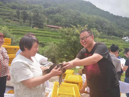陜煤集團(tuán)駐漢陰縣雙河口鎮(zhèn)梨樹(shù)河村第一書記賀磊為村民送養(yǎng)殖家畜