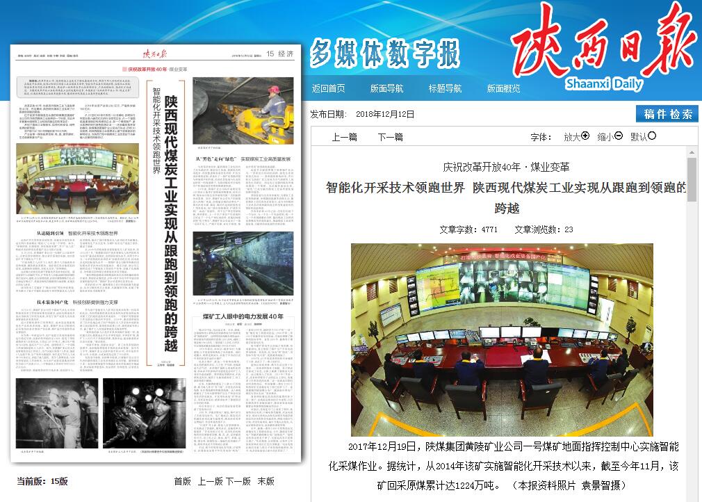 改革開(kāi)放40年,陜西煤炭工業(yè)以科技創(chuàng)新為原動(dòng)力,從學(xué)習(xí)模仿到自主創(chuàng)新、從跟隨到引領(lǐng),實(shí)現(xiàn)了智能化開(kāi)采技術(shù)領(lǐng)跑世界。