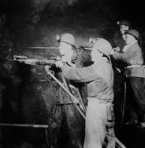 過(guò)去煤礦工人在井下采煤。 (本版照片除署名外均由陜煤集團(tuán)提供)