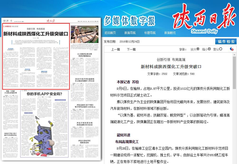 創(chuàng)新引領(lǐng) 布局高端 新材料成陜西煤化工升級(jí)突破口
