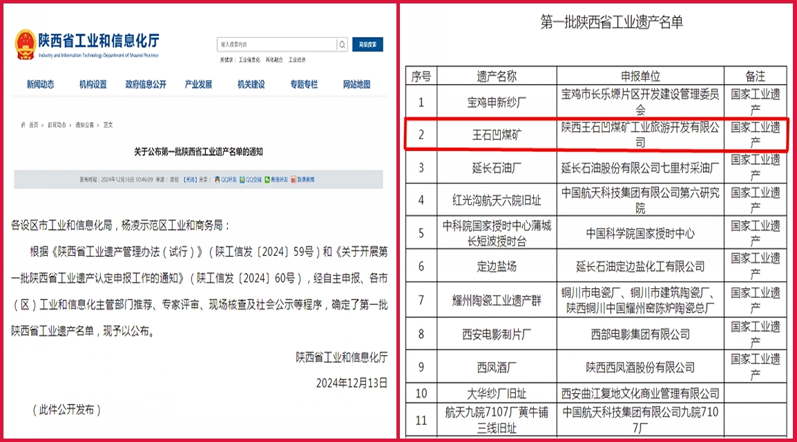 近日,陜西省工業(yè)和信息化廳公布了第一批陜西省工業(yè)遺產(chǎn)名單,公司王石凹煤礦憑借其獨(dú)特的歷史價值、社會價值和獨(dú)特的工業(yè)景觀入圍名單。