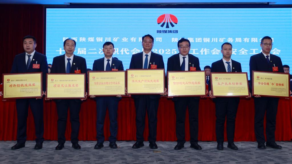 陜西煤業(yè)副總經(jīng)理張森,公司黨委書記、董事長路根奎出席會議并講話,公司黨委副書記、董事、總經(jīng)理雷鐵山在會上作了題為《真抓實干謀突破 賡續(xù)事業(yè)勇?lián)?奮力開創(chuàng)新時代銅煤高質(zhì)量發(fā)展新局面》的工作報告,并代表公司與四對生產(chǎn)礦井、冶坪分公司主要負責同志簽訂了2025年度安全生產(chǎn)責任狀。公司董事、副總經(jīng)理邢彥民作了題為《突出事前預防狠抓工作落實 以高水平安全保障公司高質(zhì)量發(fā)展》的安全工作報告。公司黨委副書記、董事、工會主席許江濤主持第一次全體會議,并代表職工方與企業(yè)方代表簽訂了《2025年工資集體合同》。公司黨委常委、紀委書記權(quán)恒主持第二次全體會議。公司總工程師岳東、副總經(jīng)理梁銳、總會計師文永兵分別宣讀了《關于表彰2024年度安全生產(chǎn)先進集體和先進個人的決定》《關于安全生產(chǎn)特別嘉獎的決定》《關于表彰2024年度單項工作成效顯著單位、部門的決定》。公司副總經(jīng)理李樹深作了《十一屆一次職代會提案落實及十一屆二次職代會提案征集情況報告》。會議還表決通過了十一屆職代會專門工作委員會增替補委員名單和大會決議,并通報了民主評議公司領導班子和領導人員結(jié)果。會議以現(xiàn)場+視頻方式召開,設一個主會場和7個分會場,來自公司各條戰(zhàn)線的職工代表,參會的列席代表和受表彰的先進集體代表,共計190人在煤業(yè)賓館主會場參加了會議。290多名干部職工以視頻會議的方式在分會場聆聽了會議。