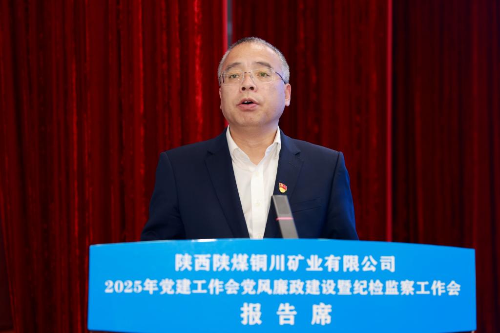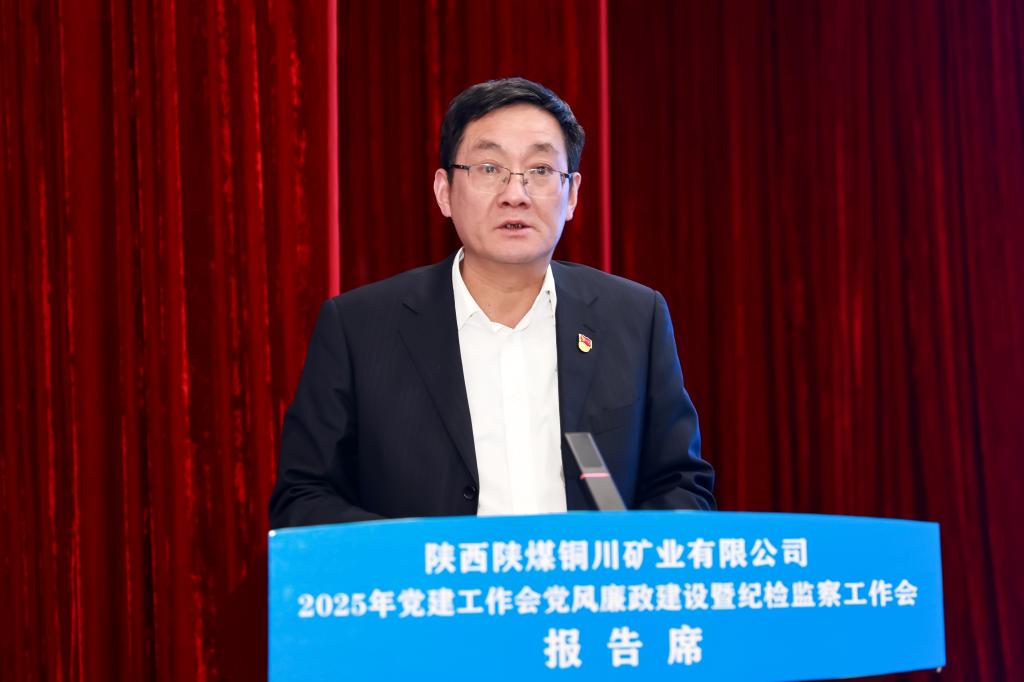 會上,公司黨委副書記、董事、工會主席許江濤作了題為《持之以恒強基固效 矢志不渝接續(xù)奮斗 為全面推動新時代銅煤高質量發(fā)展提供堅強保障》的黨建工作報告,報告從“政治引領堅強有力、黨紀學習教育扎實有效、組織基礎更加鞏固、隊伍活力競相迸發(fā)、黨建融合賦能提效、廉政建設縱深推進、群團工作不斷增強、民生福祉持續(xù)增進”八個方面,全面回顧總結了公司2024年黨建工作。報告在研判形勢、分析問題的基礎上,明確了公司2025年黨建工作的總體思路,并從“打好‘五場硬仗’,聚力‘實干爭先’;緊扣‘三個維度’,夯實‘發(fā)展根基’;建立‘四大體系’,提升‘運行質效’”三個方面,對2025年黨建工作重點任務進行了安排部署。