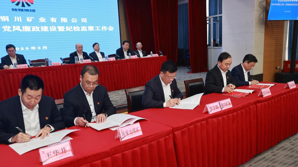 會上,雷鐵山傳達了陜煤集團召開2025年黨建工作會、企業(yè)文化建設推進會,黨風廉政建設暨紀檢監(jiān)察工作會,陜西煤業(yè)2025年黨建工作會、黨風廉政建設暨紀檢監(jiān)察工作會會議精神,與會人員聽取了公司2025年黨建工作報告、黨風廉政建設暨紀檢監(jiān)察工作報告。會議表彰了2023—2024年度黨風廉政建設和紀檢監(jiān)察先進集體和先進個人,公司領導與基層單位簽訂了2025年度黨建目標責任書及黨風廉政建設目標責任書。