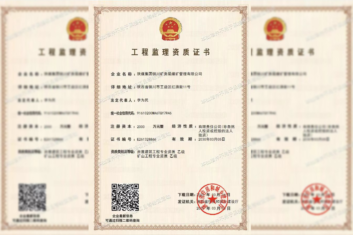 近日,煤礦管理公司經(jīng)陜西省住房和城鄉(xiāng)建設(shè)廳審查核準(zhǔn),順利獲得獲得房屋建筑工程和礦山工程監(jiān)理資質(zhì)(乙級),這標(biāo)志著該公司在業(yè)務(wù)拓展和工程監(jiān)理領(lǐng)域邁出堅(jiān)實(shí)一步,具備在相關(guān)工程領(lǐng)域提供監(jiān)理服務(wù)的能力。