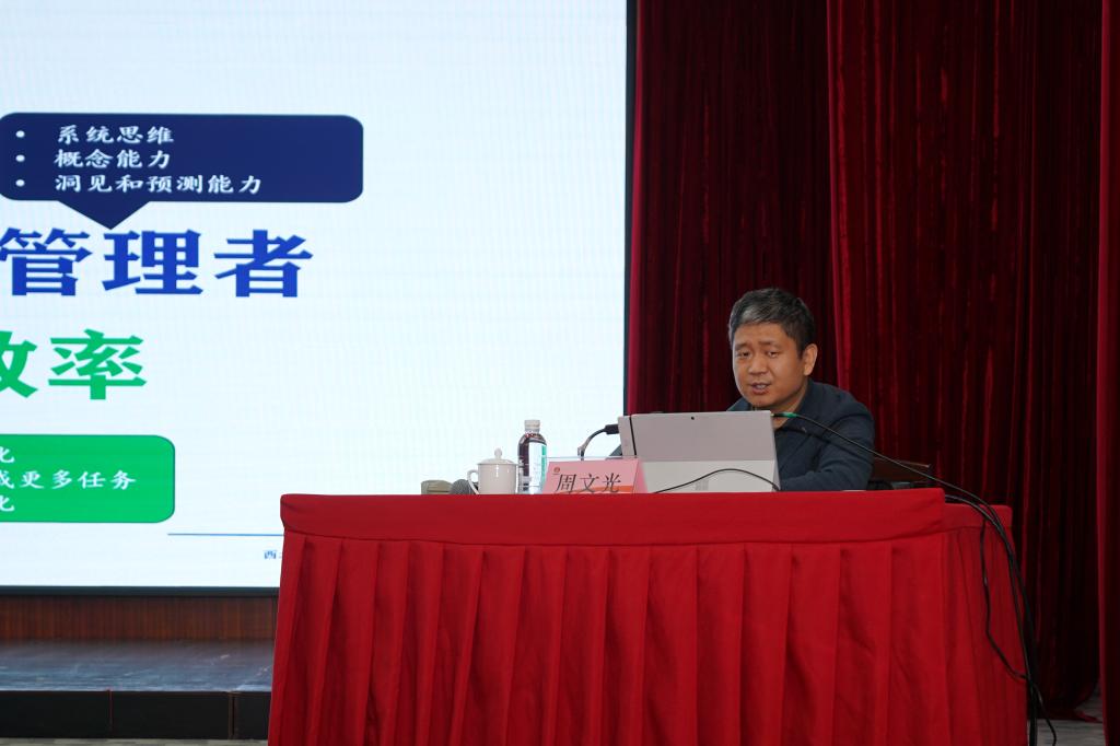 授課中,周文光主任聚焦當(dāng)下AI 發(fā)展的蓬勃趨勢,深入剖析了人工智能的特點、功能,如何重塑管理模式,提升工作效能效率和融入日常生活,指出其核心優(yōu)勢在于海量的數(shù)據(jù)儲備、繁多的參數(shù)配置,強大的多模態(tài)信息處理能力,是助力工作的全能助手,并通過對比當(dāng)下主流的大模型,客觀分析各自的優(yōu)劣勢,管理者在選擇和應(yīng)用過程中要掌握的方法,以及如何將人工智能應(yīng)用到?jīng)Q策和管理中的舉措。